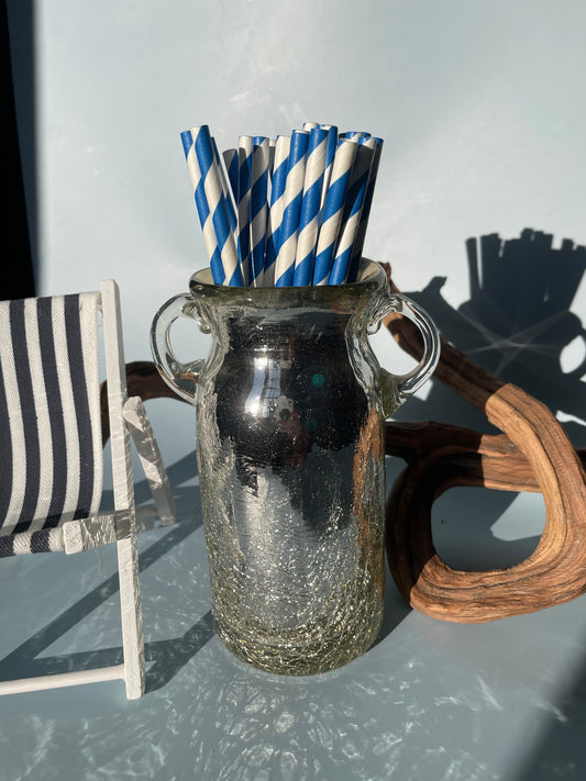 Mexican Glass Milk Jug Vase Silver Vase