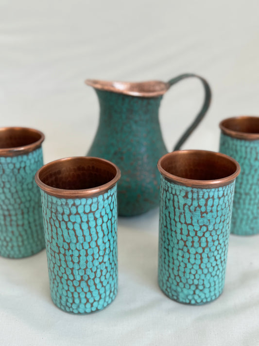 Cobalt Blue Rim & Handle Glass Pitcher – Juice, Margaritas, Water, Lemonade (84 oz)