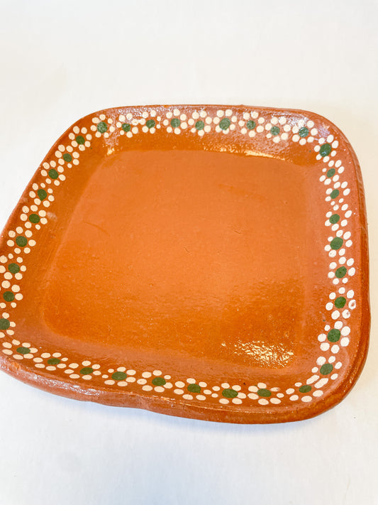 Michoacan Mexican Clay Set of 4 Plate Square 10 Inch Plato Lead Free Plato Barro