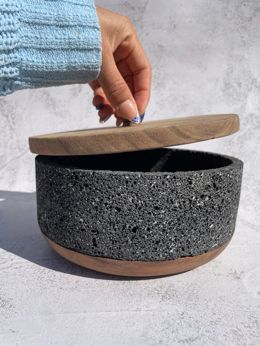 Volcanic Stone Tortillero With Wood Lid Tortillero Piedra Volcanica Tortillero Mexicano Tortillero de Madera