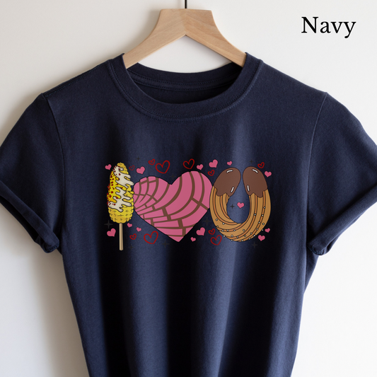 I love you shirt with elote, concha y churro. Mexican Unisex Heavy Cotton Tee. Mexican Valentines Day. Pan dulce shirt.