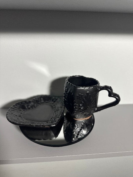 Heart Shaped Talavera Mug Set (Black/Black) -Juego Taza Corazon Negra