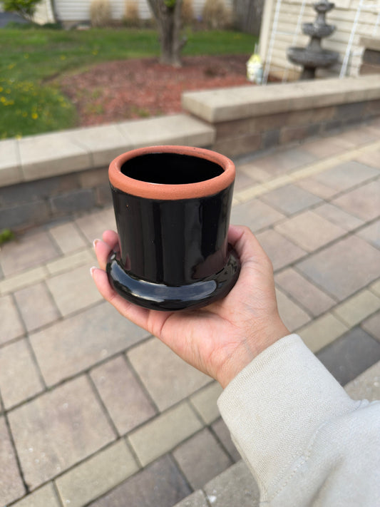 Cappuccino Talavera Mug Set All Black - Taza con Plato Negro