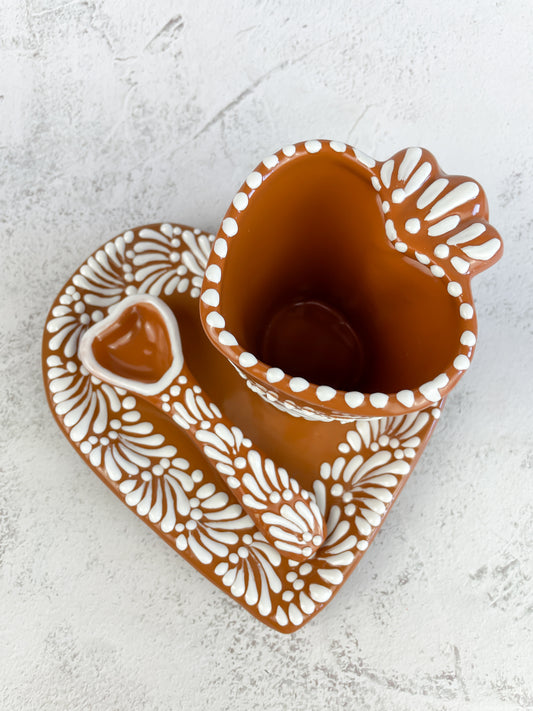 Heart Shaped Talavera Coffee Mug Set With Spoon