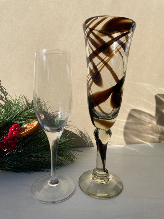 Mexican Glassware 2 pc Set Blown Glass Champagne Glasses Mexican Blown Glassware Champagne Flute