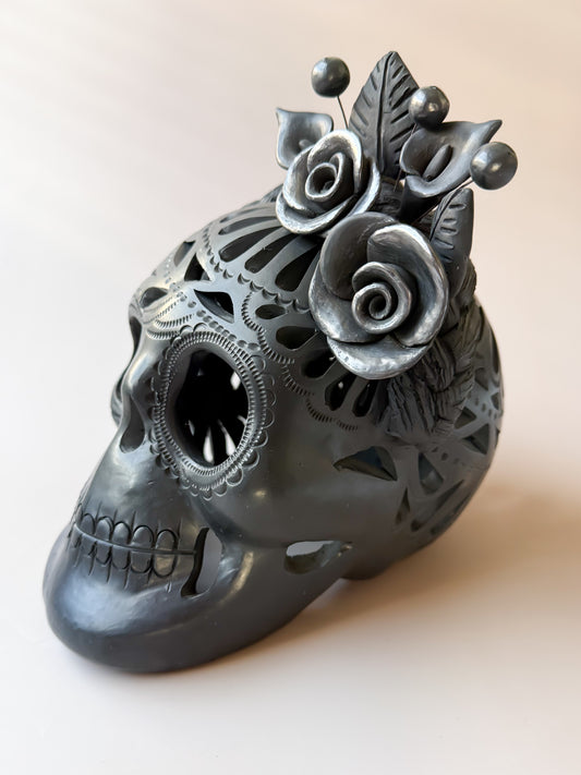 Oaxaca Black Pottery Skull Large Frida Skull Calavera Barro Negro