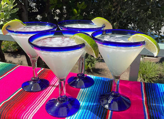 Cobalt Blue Rim Modern Margarita Glasses - Martini Style - Set of 4 (12 oz each)