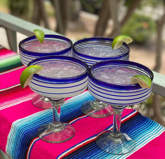 Cobalt Blue Spiral Design Margarita Glasses - Set of 4 (16 oz each)