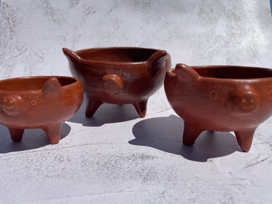 Oaxaca Red Clay Piggy Bowl Salsero Marranito Barro Rojo Marranito Bowl Chochinito Bowl