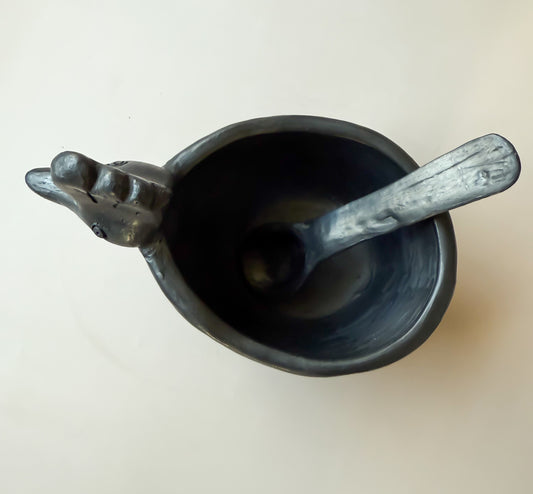 Oaxaca Black Pottery Chicken Shaped Bowl with Spoon Tazón de Gallina Barro Negro