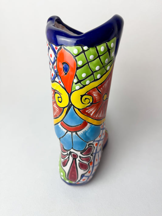 Cowboy Boot Planter 10 In Talavera Boot Vase Talavera Flower Pot Western Home Decor Colorful
