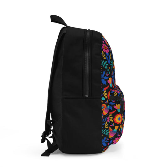 Mexican Backpack. Otomi Mexican Black and colorful back pack with Mexican art bag. Casual backpack for work, adventure or school.