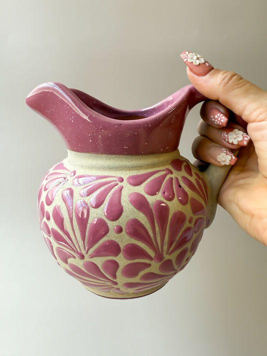 Mexican Talavera Pitcher Engobe Colorful Jarra De Barro Talavera Small Pitcher Black Pink Brown