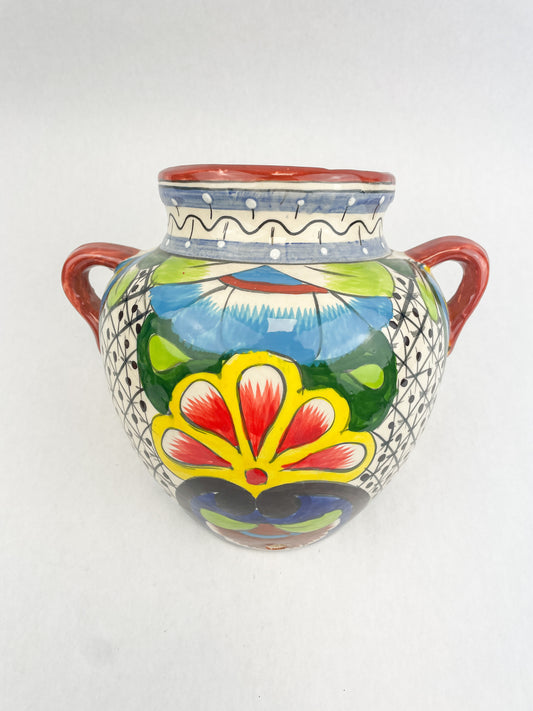 Talavera Style Flower Vase 9 Inch Centerpiece Blue And White Colorful Florero