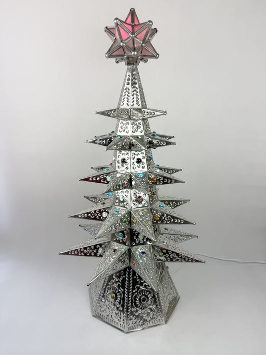 Mexican Punched Christmas Tree Tin Punched Christmas Tree Arbol de Navidad Con Luz