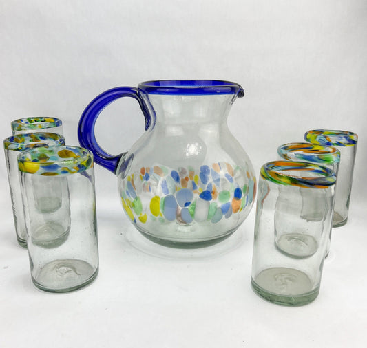 Mexican Glassware Pitcher Set Mexican Blown Glassware Mexican Confetti Glassware