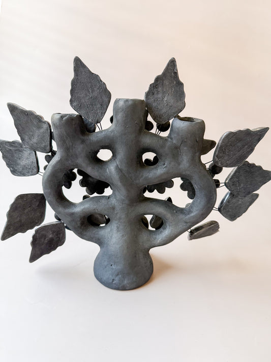 Oaxaca Black Pottery Tree Of Life Candle Holder Candelabra Arbor de la Vida Barro Negro