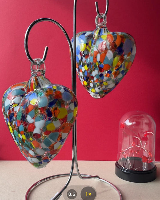 Mexican Glass Heart Blown Glass Heart Pendant Metal Silver Stand Corazon