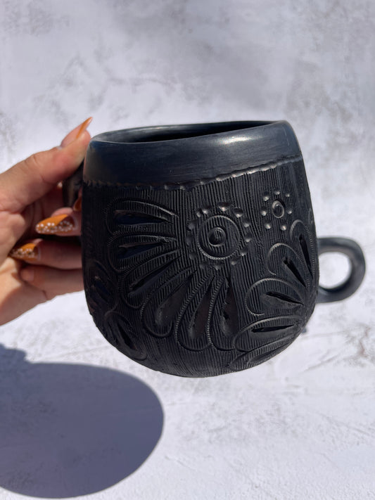 Oaxaca Black Pottery Mugs Taza Con Plato Barro Negro Black Pottery