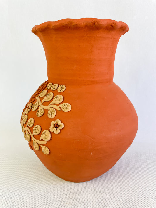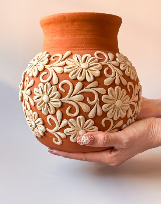 Velasco Oaxaca Pottery Vase Flower Vase Florero Barro Rojo Clay Filigrana Clay Embroidery
