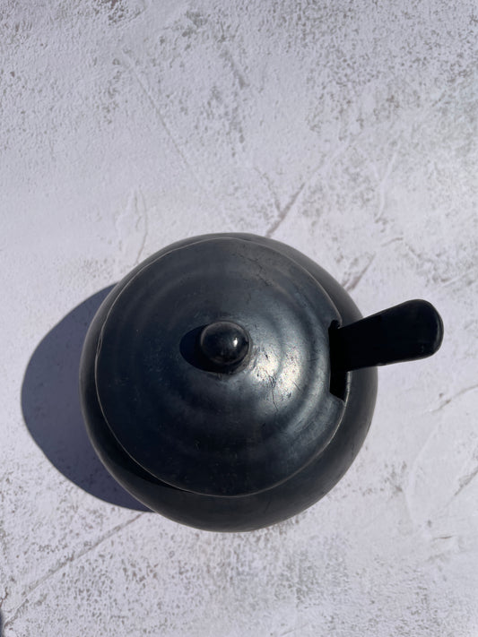 Oaxaca Black Pottery Round Sugar Bowl With Spoon Azucarera Barro Negro
