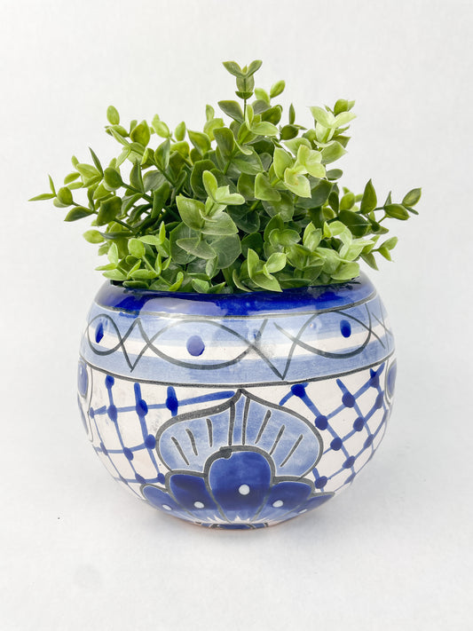 Talavera Mexican Flower Pot With Saucer Maceta Con Plato Blue