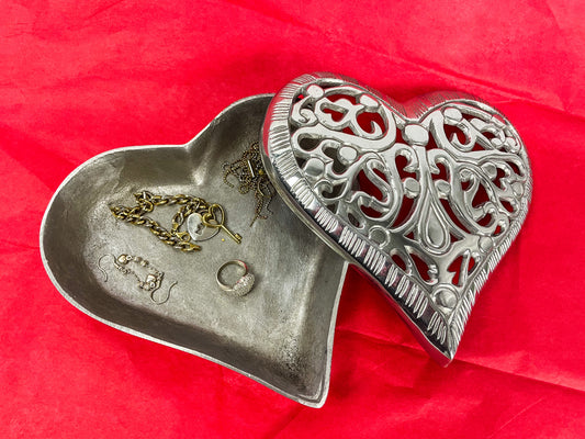 Heart Shaped Jewelry Box Hand Made Pewter Jewelry Box