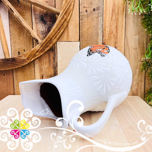 Monarch Butterfly White Large Clay Pitcher - Jarro de Barro Mariposa