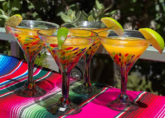 Confetti Carmen Design Modern Margarita Glasses - Martini Style - Set of 4 (12 oz each)