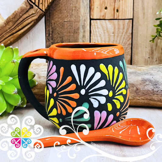 Orange With Multicolor Clay Mug with Spoon - Taza Espiga con Cuchara