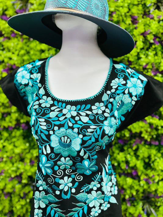 Mexican Tehuacan Dress with Lace Black - Vestido Negro