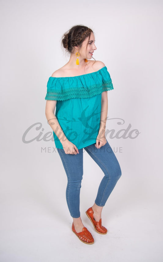 Campesina Off the Shoulder Blouse Teal