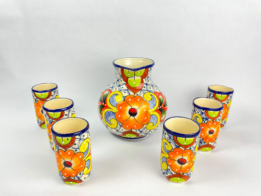 Talavera Water Pitcher Set 7 Pc Mexican Talavera pottery Pitcher With Tumblers