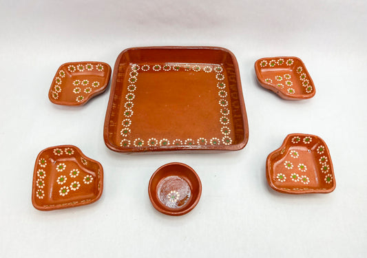 Mexican Red Clay Square 10 Inch Snack Tray 6 Piece Charola Para Botanas Salsera Botanera