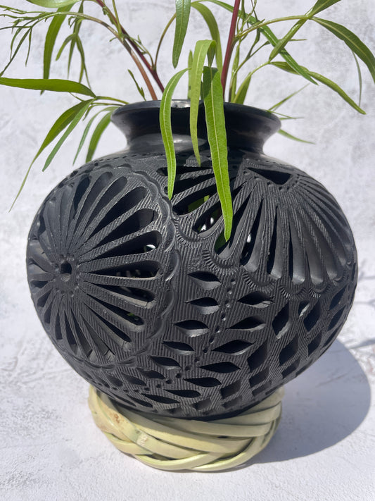 Velasco Oaxaca Pottery Vase Flower Vase Florero Barro Rojo Clay Filigrana Clay Embroidery