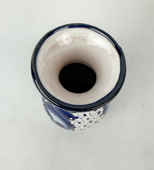 Talavera Style Flower Vase 9 Inch Centerpiece Blue And White Colorful Florero