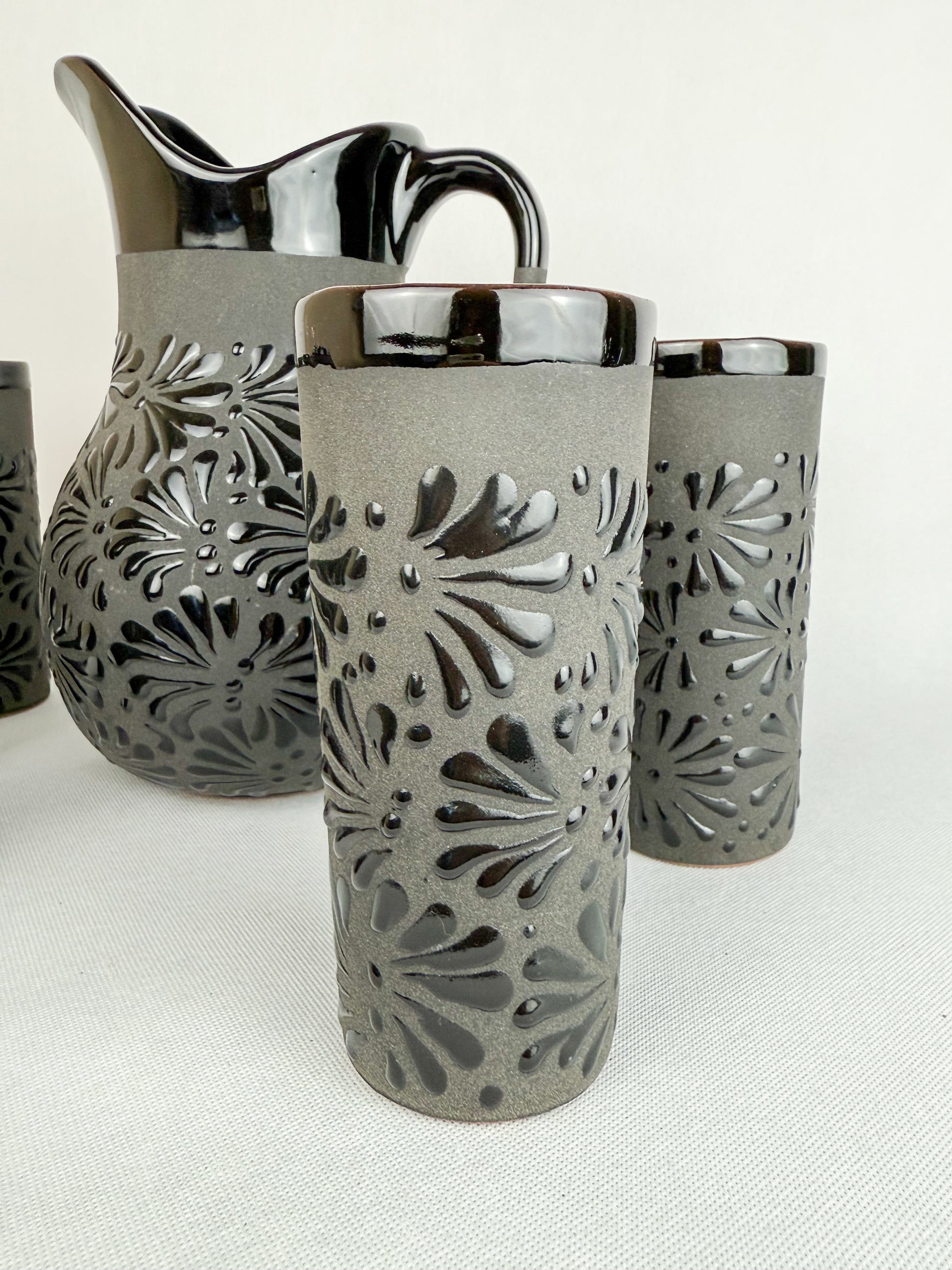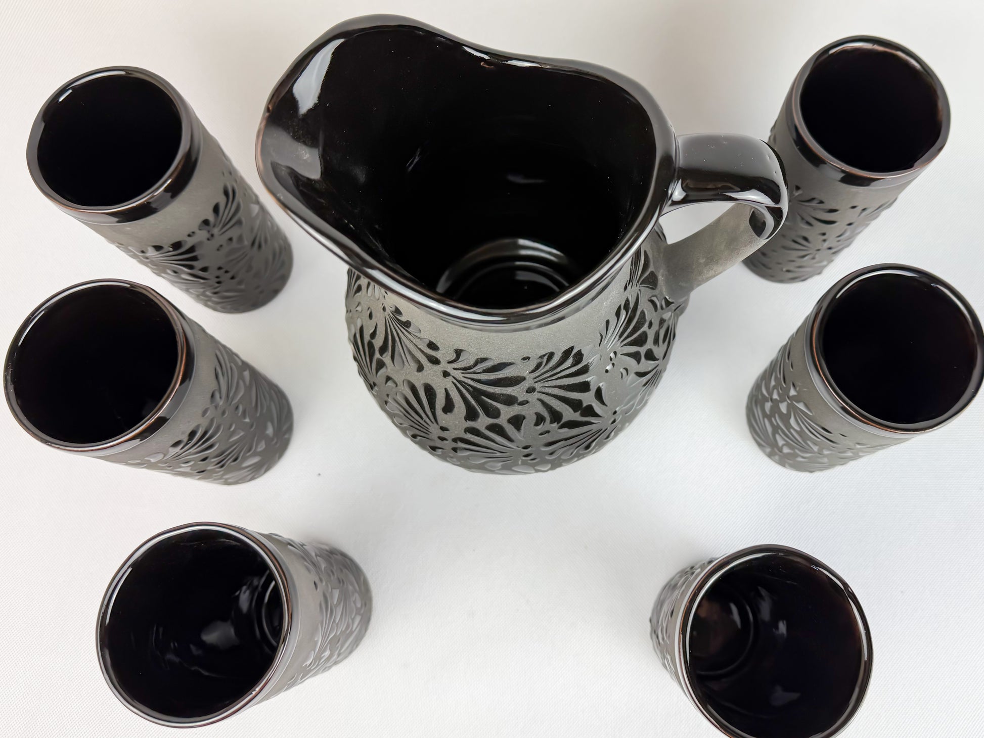 Black Talavera Pitcher with Tumblers – Elegant Mexican Pottery Set