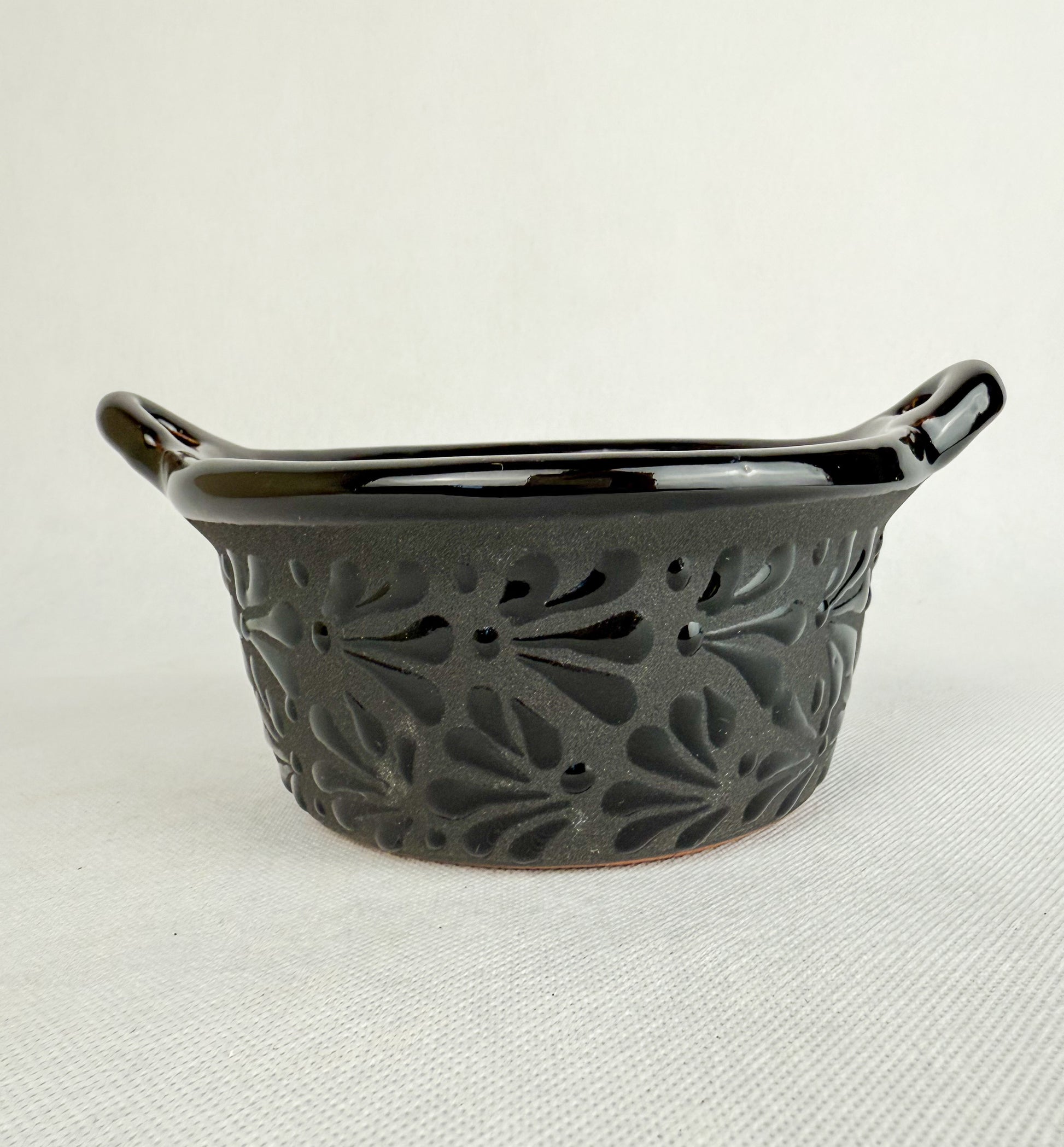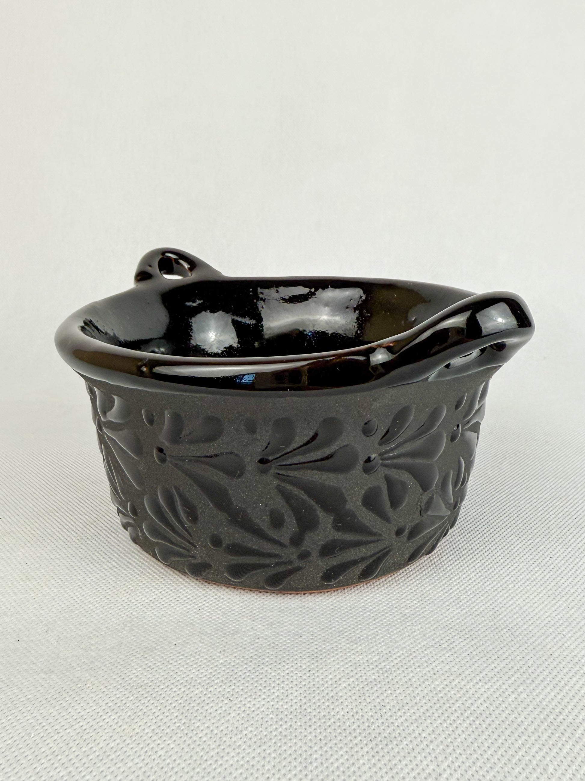 Black Talavera Style Bowls Mexican Clay Bowls Cazuelitas Talavera Negra