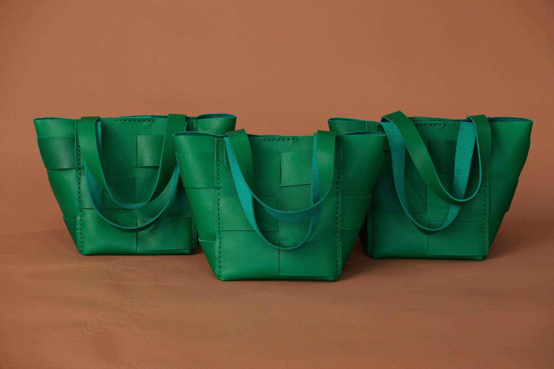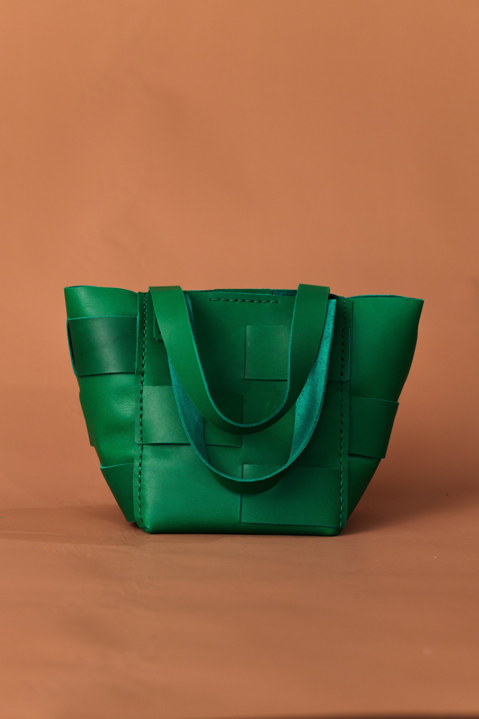 Hand woven, leather basket bag. Made in Guanajuato, Mexico.