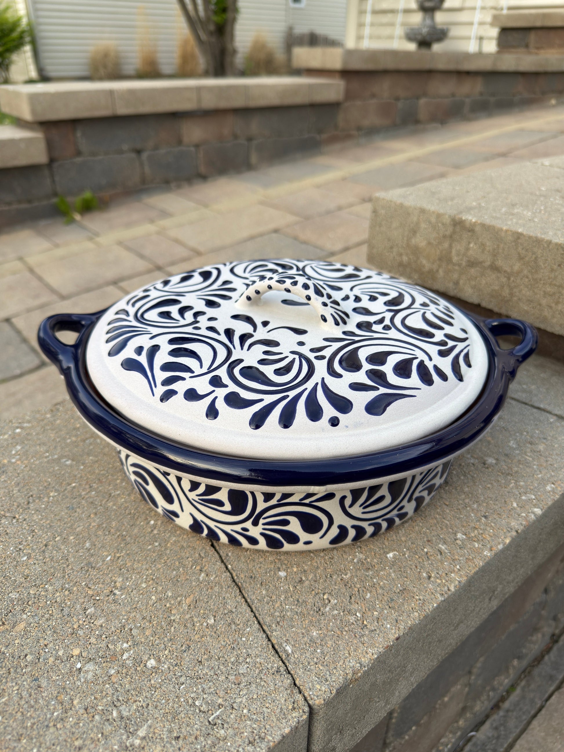 Mexican Clay Pot Gray/Blue 10" - Cazuela con tapa