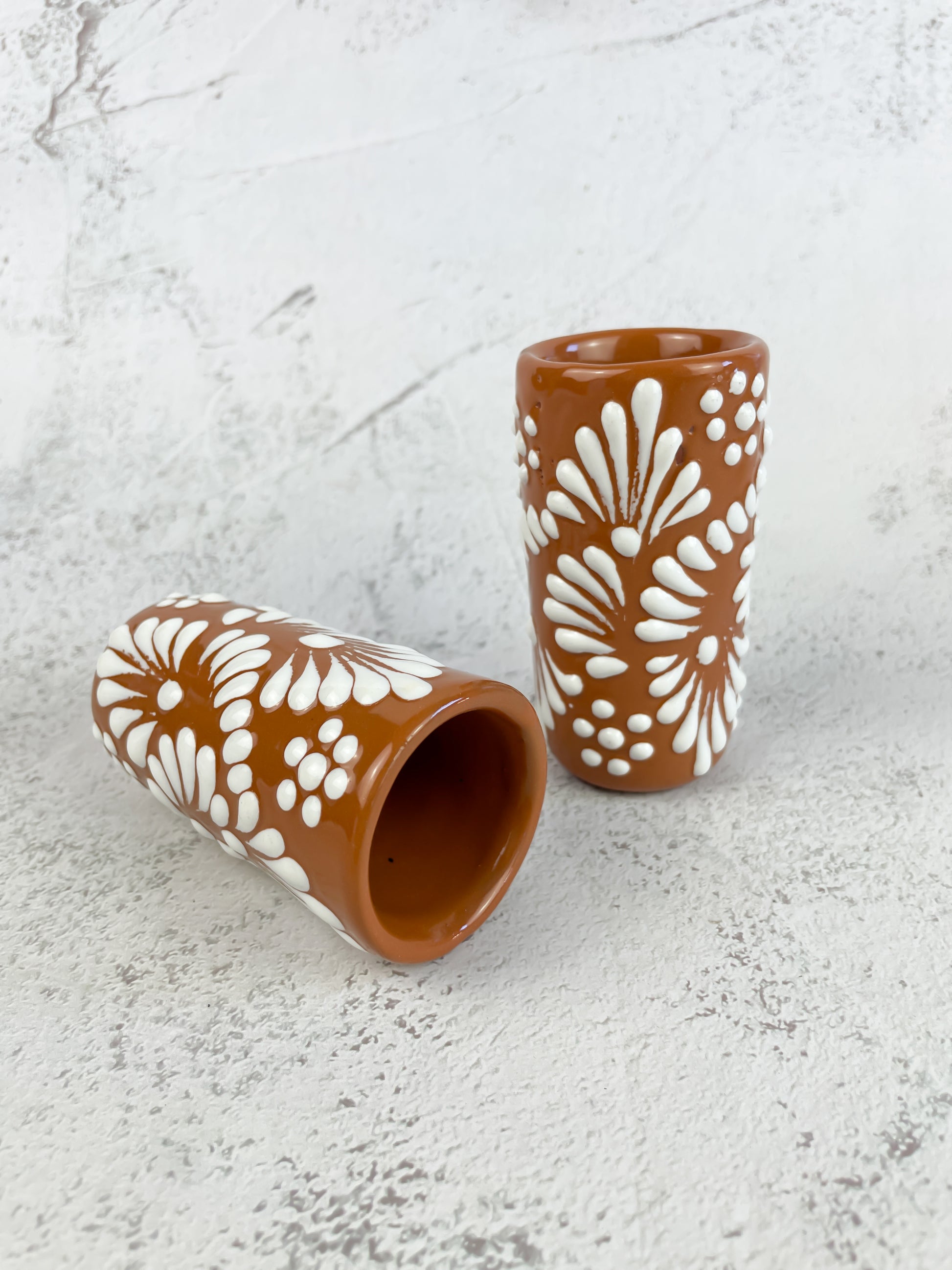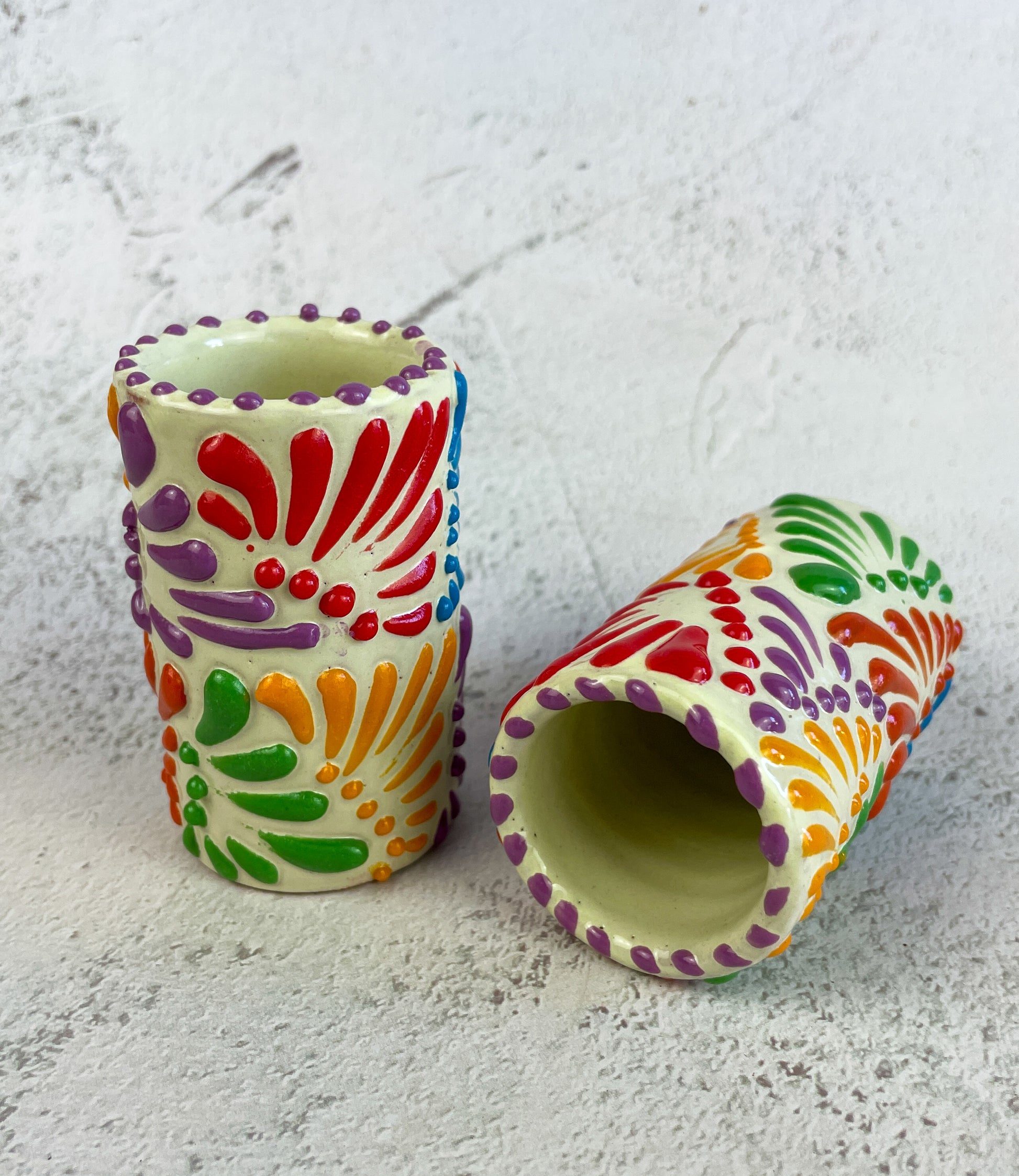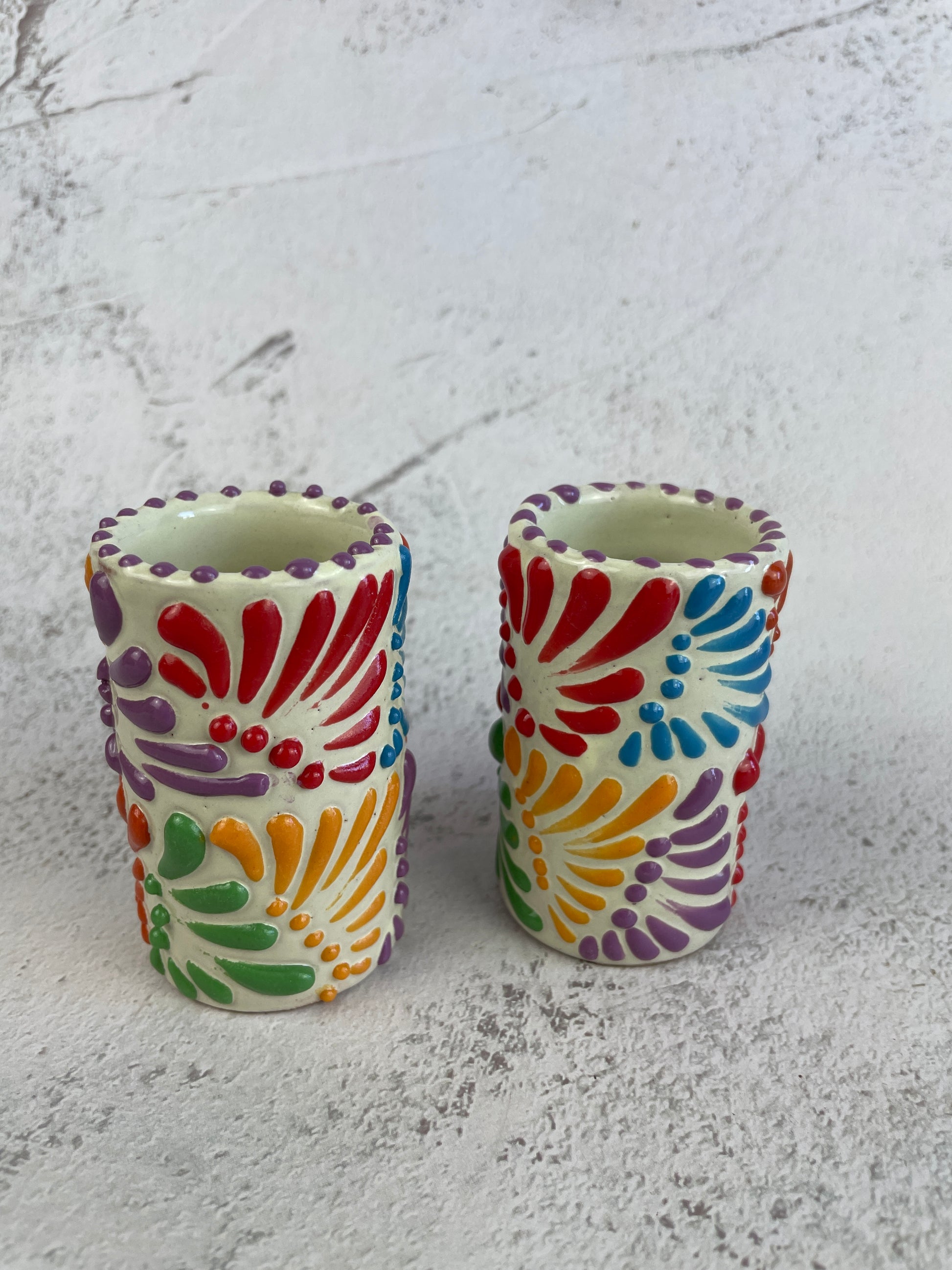 Brighten up your bar, kitchen or liquor shelf with this vibrant colors of this hand painted Talavera shot glass set.