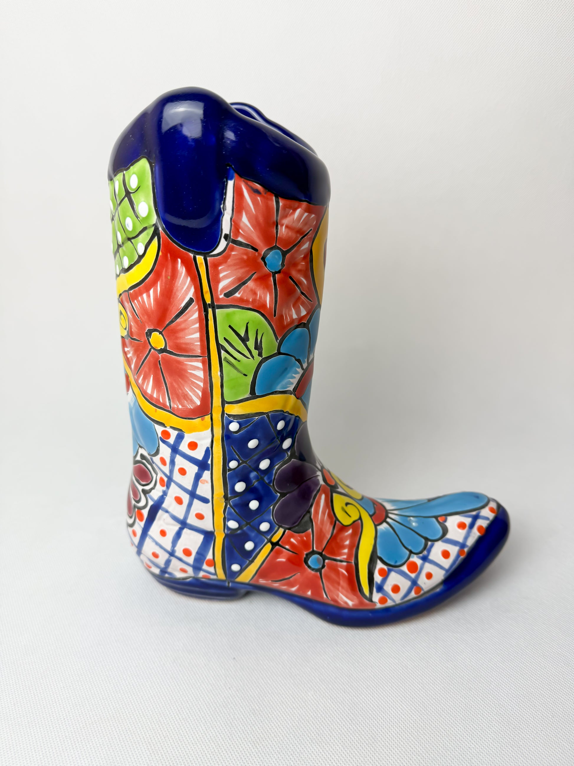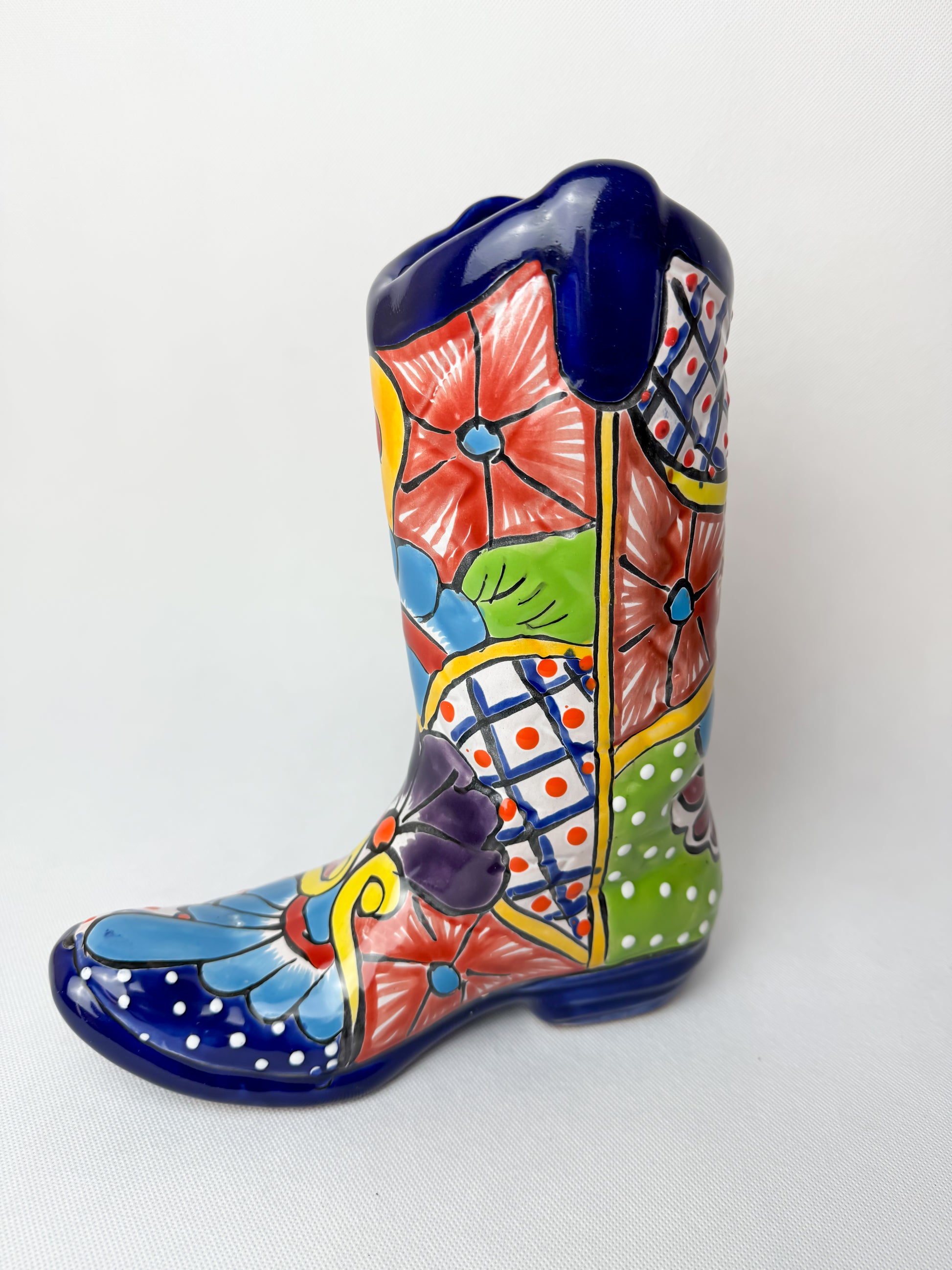 Cowboy Boot Planter 10 In Talavera Boot Vase Talavera Flower Pot Western Home Decor