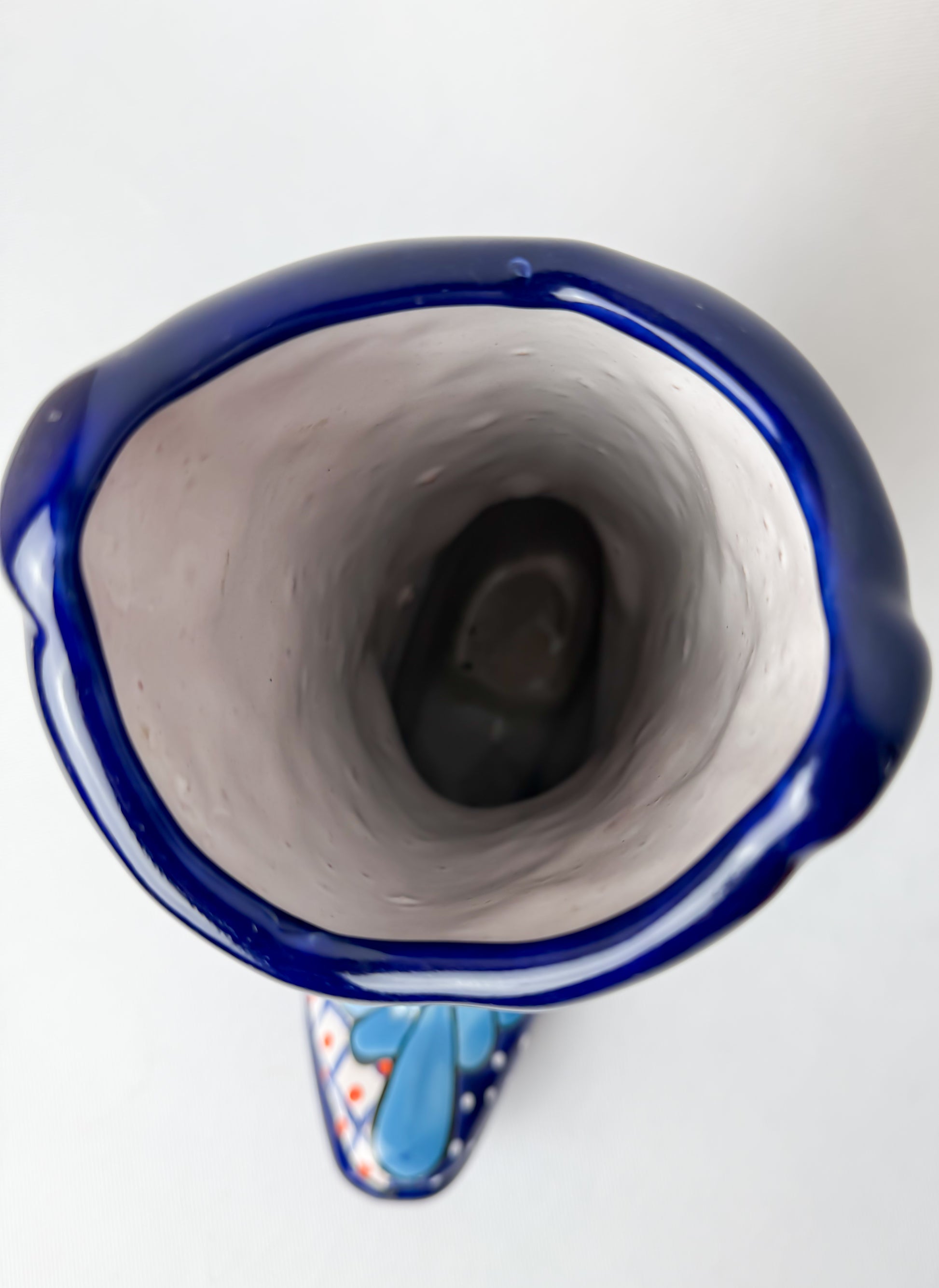 Each Talavera boot planter is crafted from high-quality clay pottery, ensuring durability and longevity. The intricate hand-painted designs are truly one-of-a-kind, making each planter pot a true work of art. Whether you're a lover of Mexican Talavera or simply looking for a standout piece of home decor, this Talavera boot planter is sure to impress.