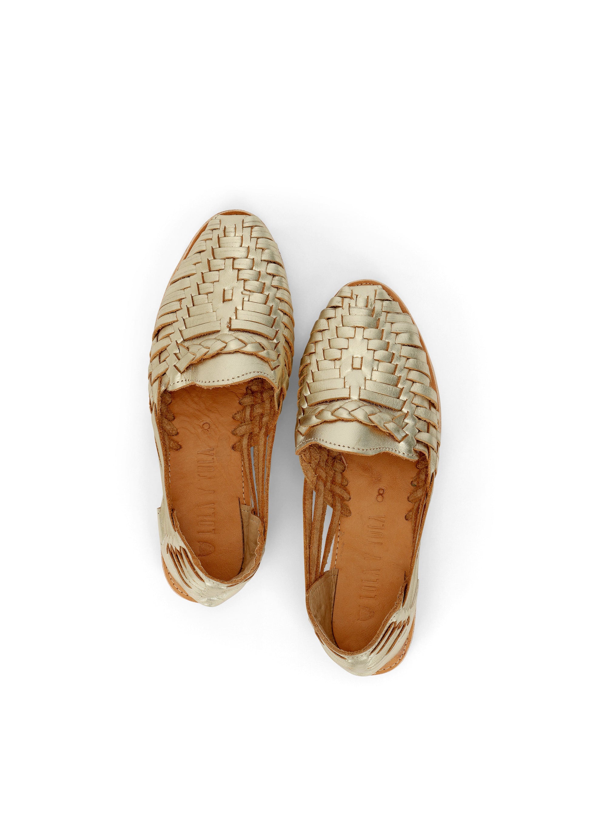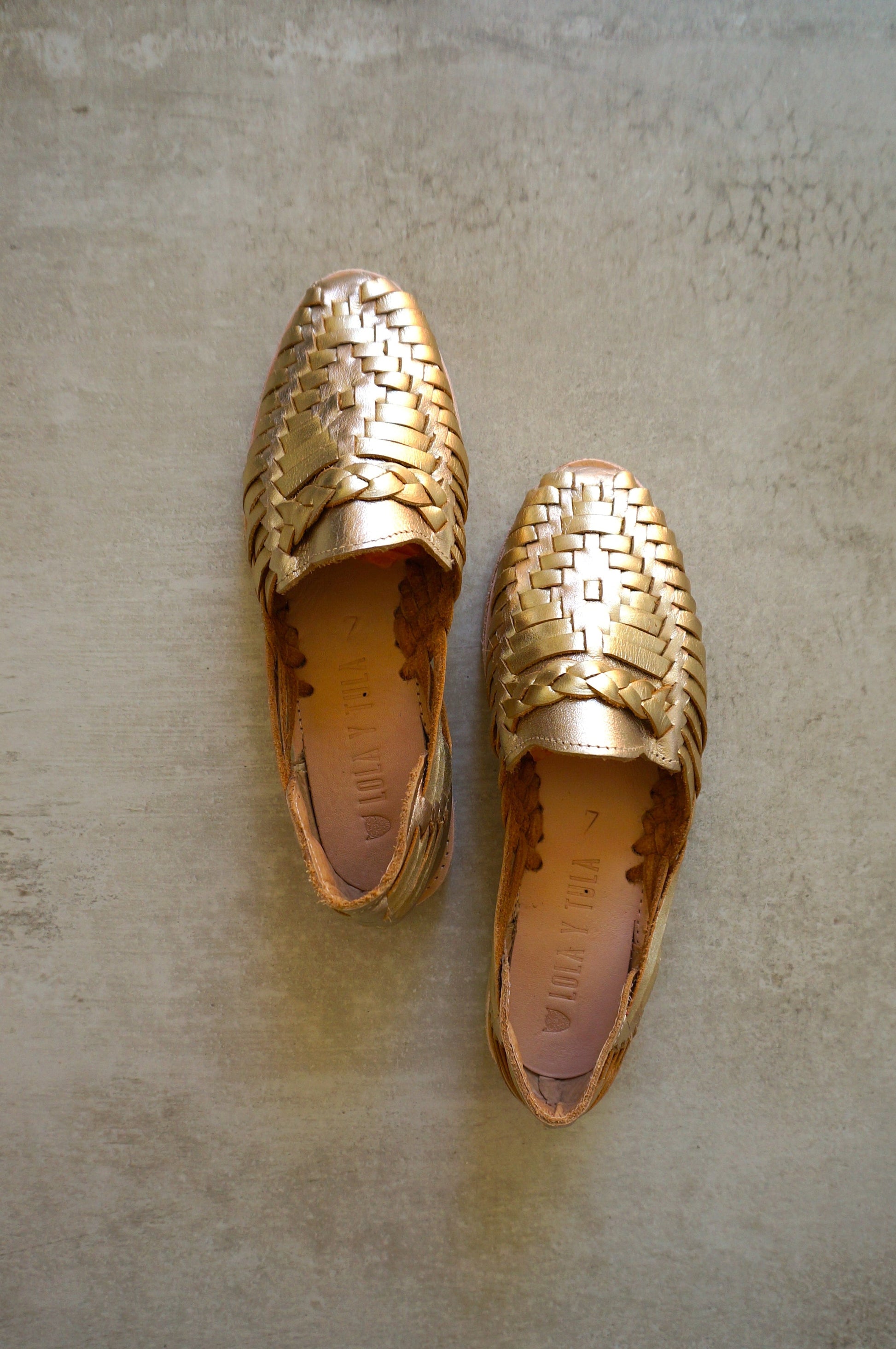 Our best selling, classic leather huaraches done in bright and bold metallic gold. Functional, comfortable, chic and beautiful. Hand crafted by artisans in Mexico, these slip on shoes are a classic staple that only wear better with time.