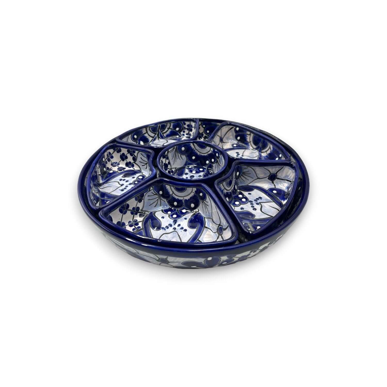 Handmade Talavera Appetizer Tray | Blue and White Sectional Platter