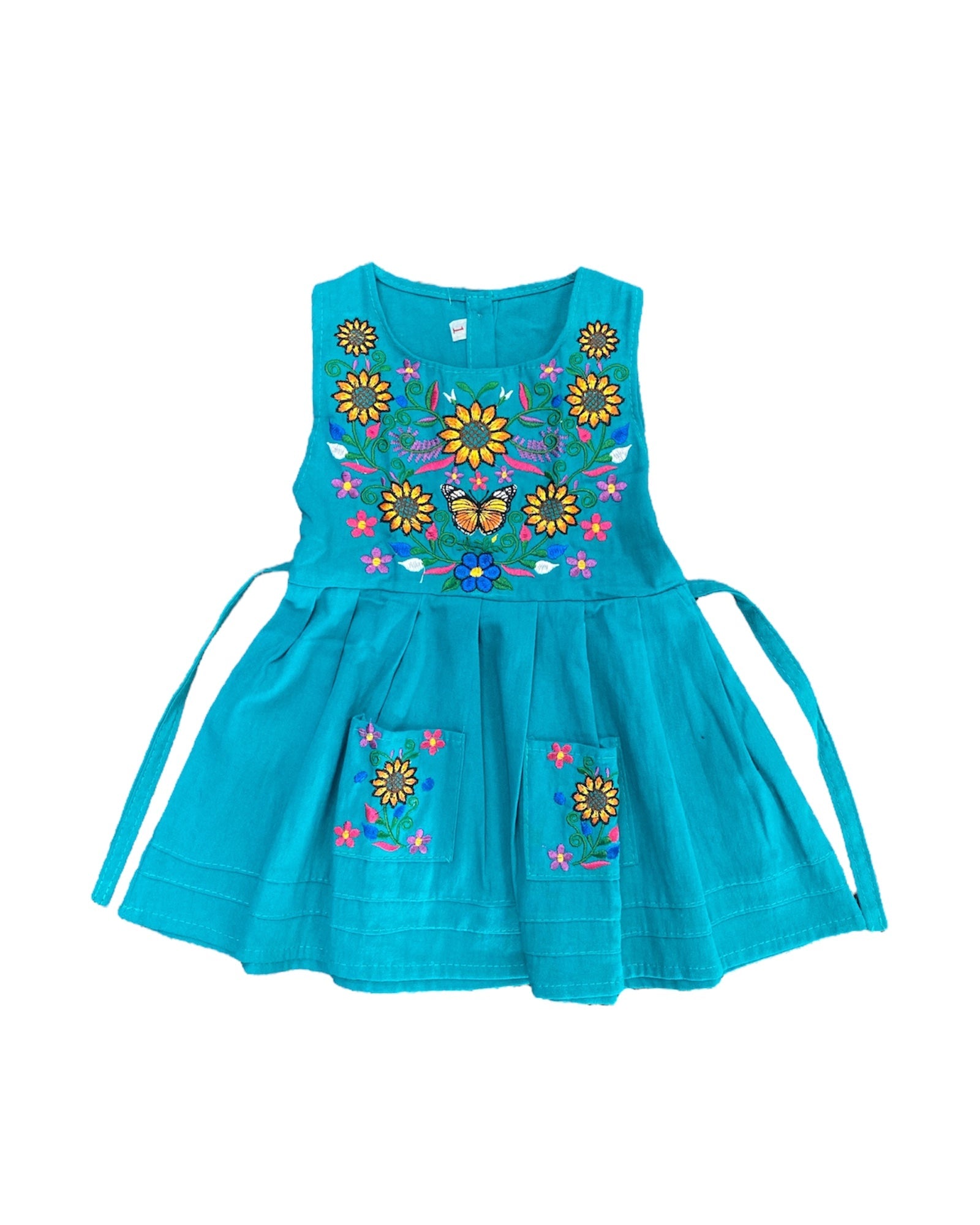 New Mexican dress for girls! Our dresses are handmade, we use a light-weight cotton blend fabric, very fresh and soft. The embroidery is made with nylon thread.