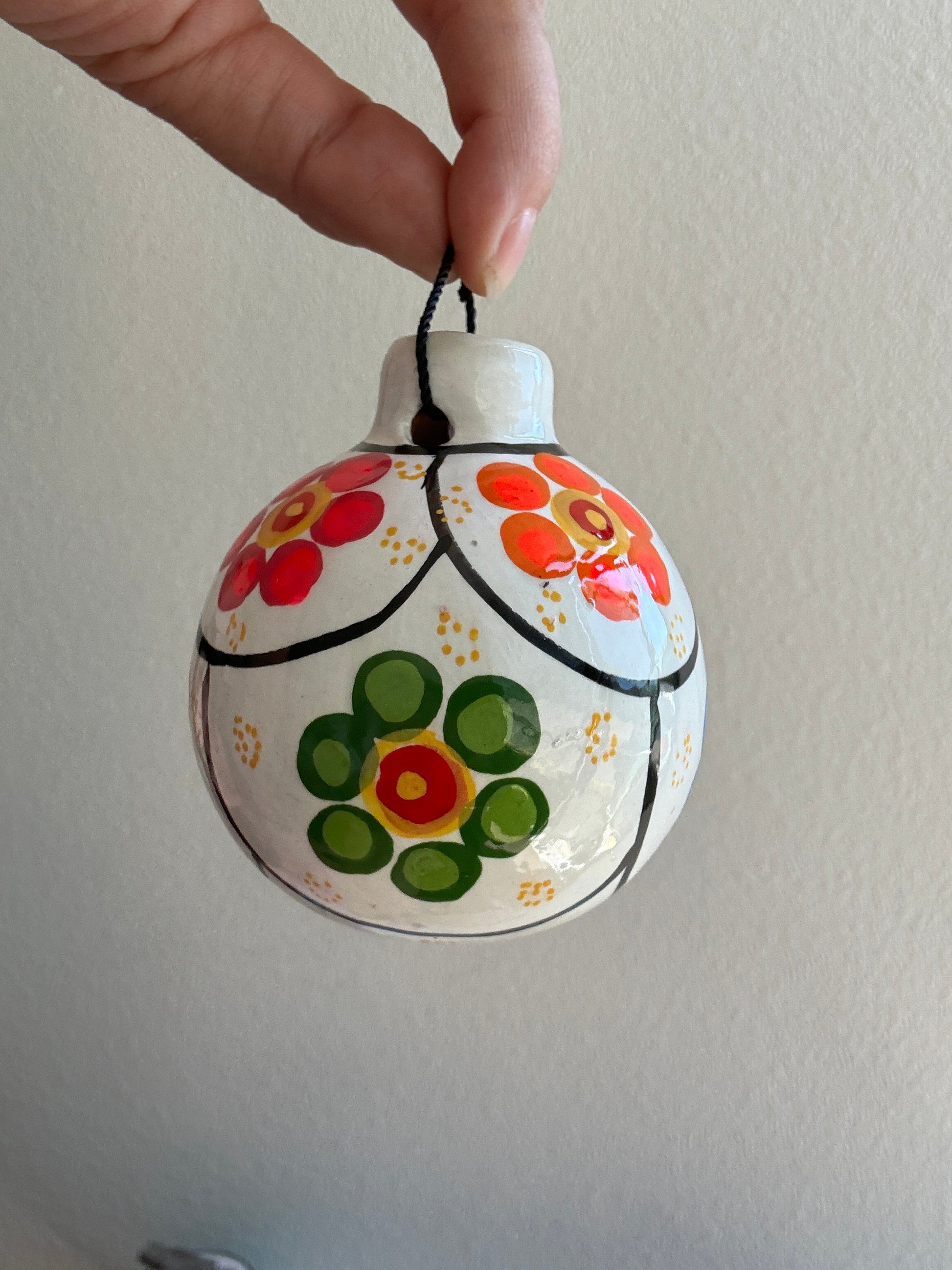 These ornaments are perfect to decorate a Christmas tree, a wreath or even look great as a gift! Each ornament is handmade out of CLAY and painted with beautiful floral designs by artisans in JALISCO.