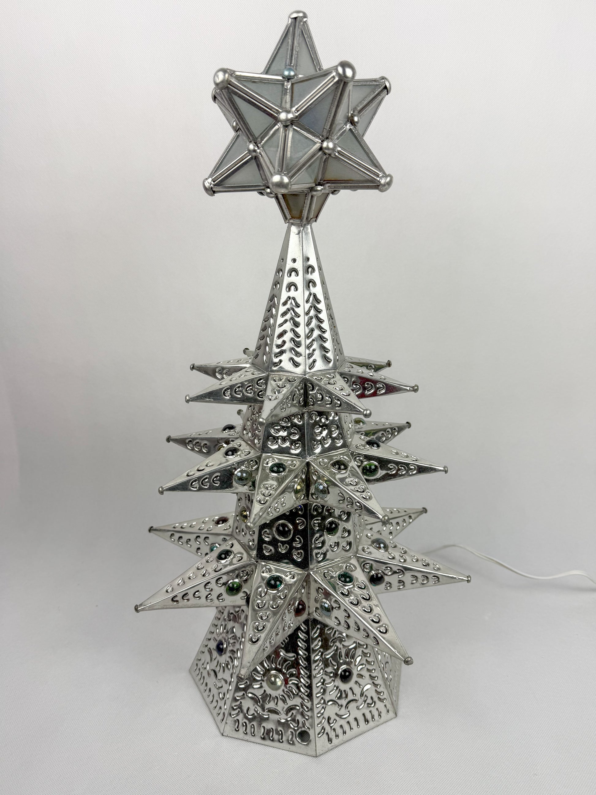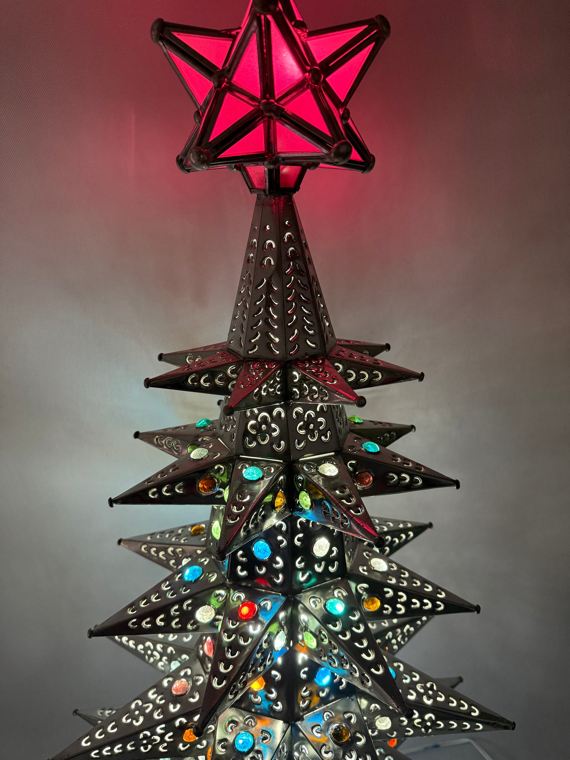 Punched Tin Christmas Tree with Star Tree Topper – Rustic Mexican Decor