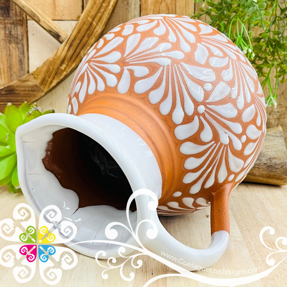 Bring the colorful of Mexico’s culture to your table with this clay pitcher. Perfect decoration or safe to serve any cold or hot drink.