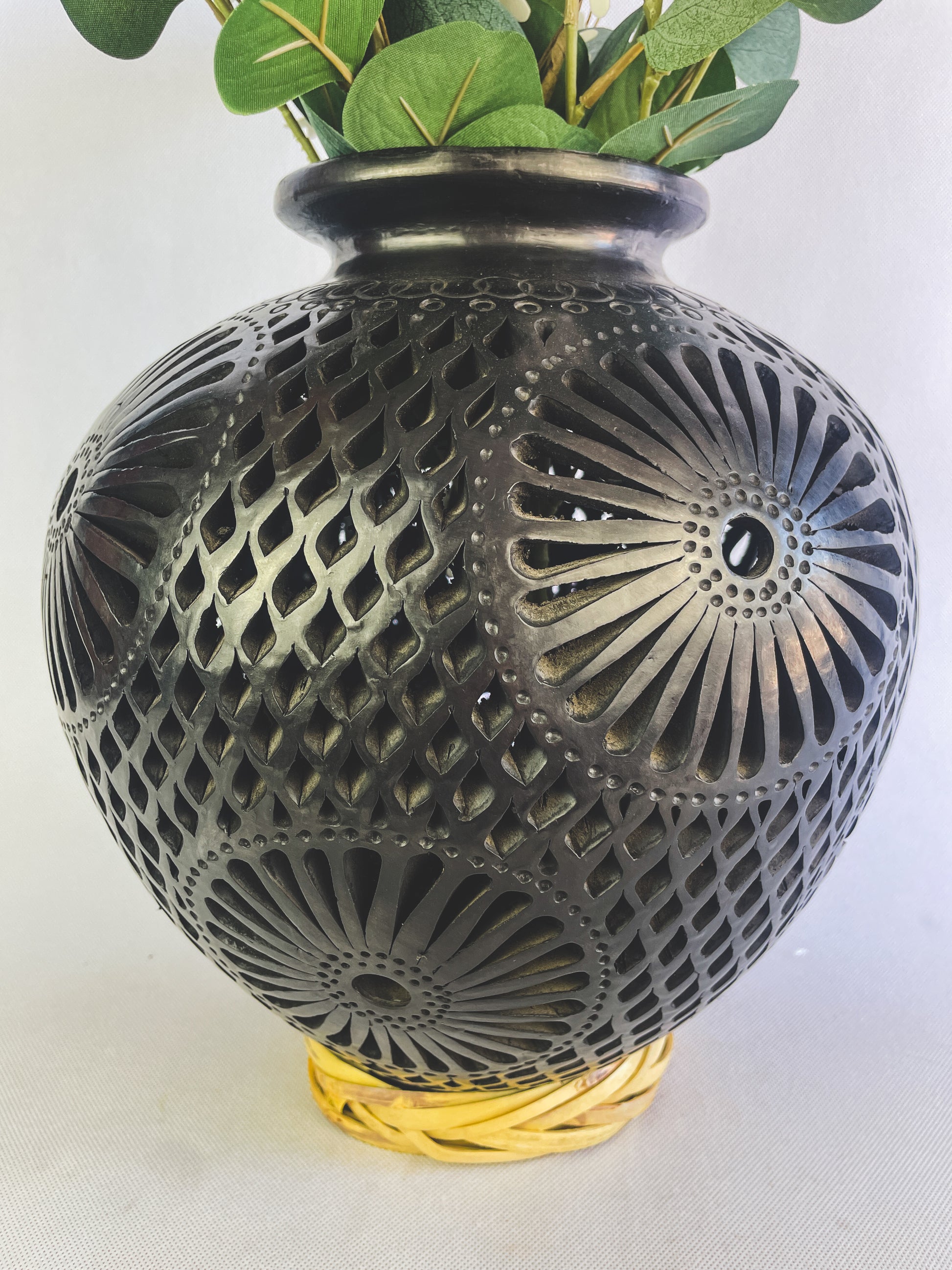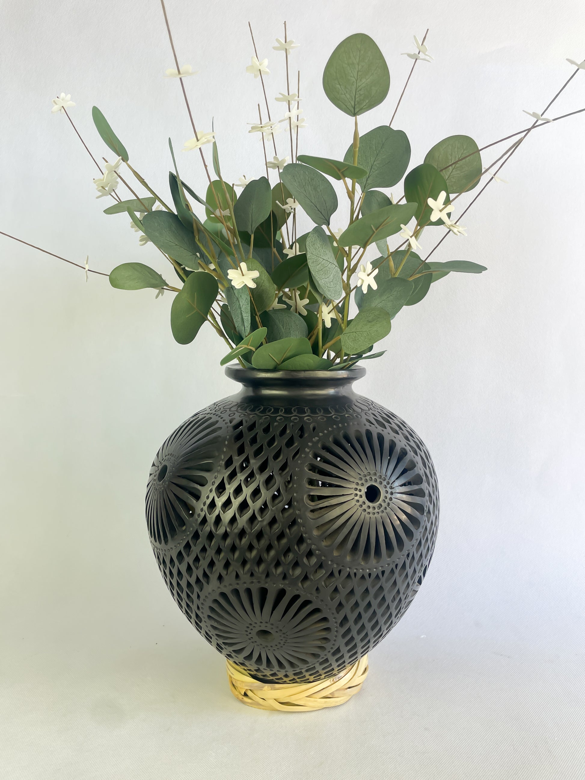 Our black pottery vases are meticulously crafted from authentic barro negro, a unique type of clay found only in the Oaxaca region of Mexico. The distinct black hue and glossy finish of these vases are a testament to the craftsmanship and artistry that goes into their creation.